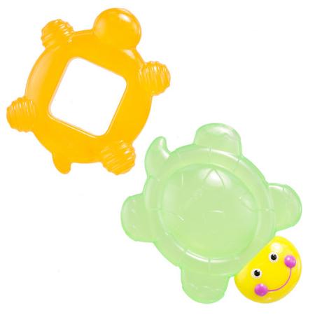 The Grin N Grow Character Teether offers a variety of textures for teething and is water-filled for a cooling effect. It is sized for a baby's mouth and hands.