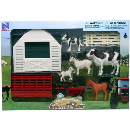 The Country Life Farm Animal and Barn Set includes a barn house, farm tractor and trailer, cows, sheep, horse and fence.