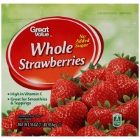 Our guarantee is our promise that you'll be fully satisfied with the taste and quality of every Great Value product. If for any reason you aren't happy, we'll replace it or return your money. Whichever you prefer. All you need is the package and the receipt. It's that simple. Great quality. Great price. Guaranteed. Great Value Sliced Strawberries with Sugar: High in vitamin C Great for smoothies and toppings Gluten free Kosher Ingredients: Ingredients: Strawberries, Sugar.