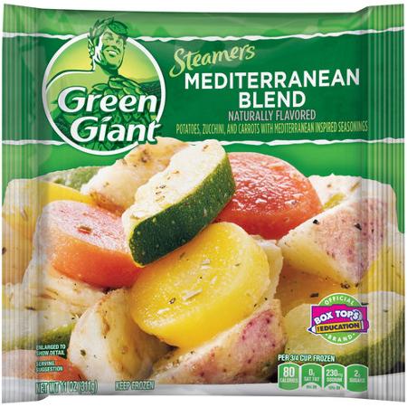 Green Giant makes it easy to be good to yourself. Each vegetable variety is crafted to give you a unique taste experience--seasoned to be delicious and ready in just minutes. Green Giant Steamers Mediterranean Blend: Potatoes, zucchini, and carrots with Mediterranean-inspired seasonings 80 calories per three-quarter cup serving Convenient microwave preparation