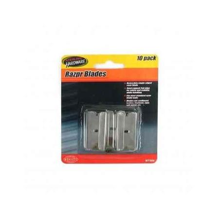 Made from metal. Silver color. These heavy duty razor blades are single-edged, fits most standard razor tools and can easily cut through cardboard, leather, linoleum and more! Razors are steel capped for safety and stability while handling. Blades come packaged on a blister card with hanging hole.