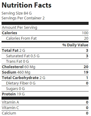 Fully cooked Carved from real breast fillets No preservatives Inspected for wholesomeness by U.S. Department of Agriculture Ingredients: Ingredients: Chicken Breast With Rib Meat, Water, Seasoning [Salt, Spices, Garlic Powder, Maltodextrin, Soy Sauce (Wheat, Soybeans, Salt), Corn Syrup Solids, Dextrose, Hydrolyzed Corn Protein, Dehydrated Cilantro, Lime Juice Solids, Natural Mesquite Smoke Flavor, Citric Acid, Natural Flavors], Contains 2% Or Less of Modified Food Starch, Vinegar, Sodium Phosphates, Caramel Color.