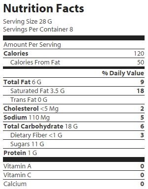 Ingredients: Semisweet Chocolate (Sugar, Chocolate Liquor, Cocoa Butter, Butterfat [Milk}, Soy Lecithin, Vanilla Flavor), Enriched Flour (Wheat Flour, Niacin, Reduced Iron, Thiamine Mononitrate, Riboflavin, Folic Acid), Granulated Sugar, Palm Oil, Caramel (Brown Sugar, Organic Tapioca Syrup, Cream [Milk], Butter [Cream {Milk}, Water, Salt], Sugar, Concentrated Whole Milk, Vanilla, Salt), Whole Eggs, Sea Salt, Water, Sodium Bicarbonate, Caramel Flavor, Natural Butter Flavoring, Nonfat Dry Milk, Vanilla Extract. Allergy Warning: Contains Milk, Eggs, Wheat And Soy. May Contain Traces of Almonds, Cashews, Coconut, Macadamia Nuts, Pecans, Pine Nuts, Walnuts And Peanuts.